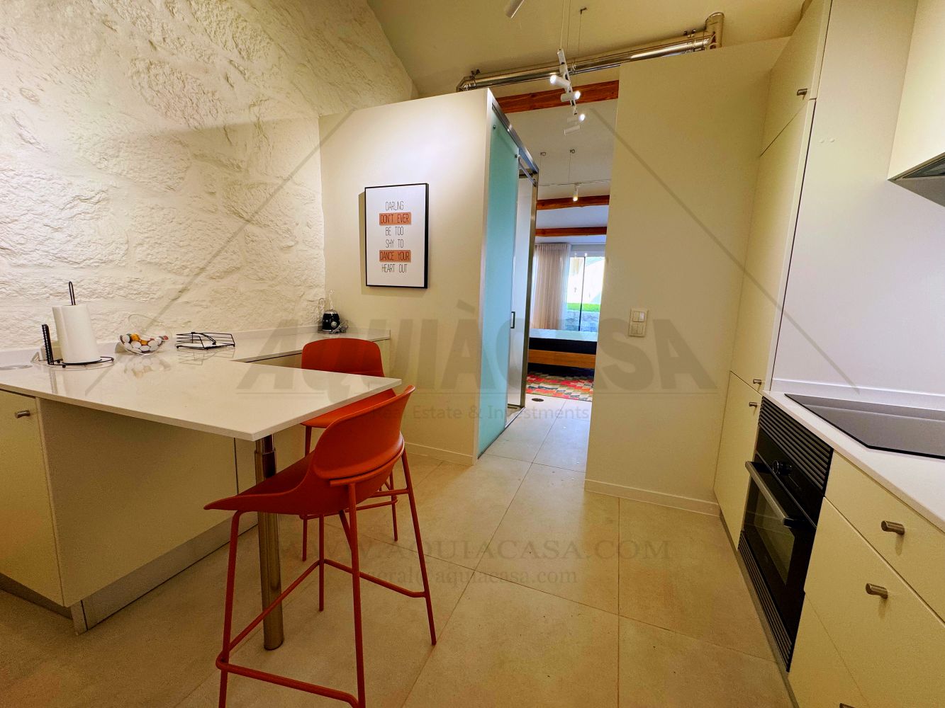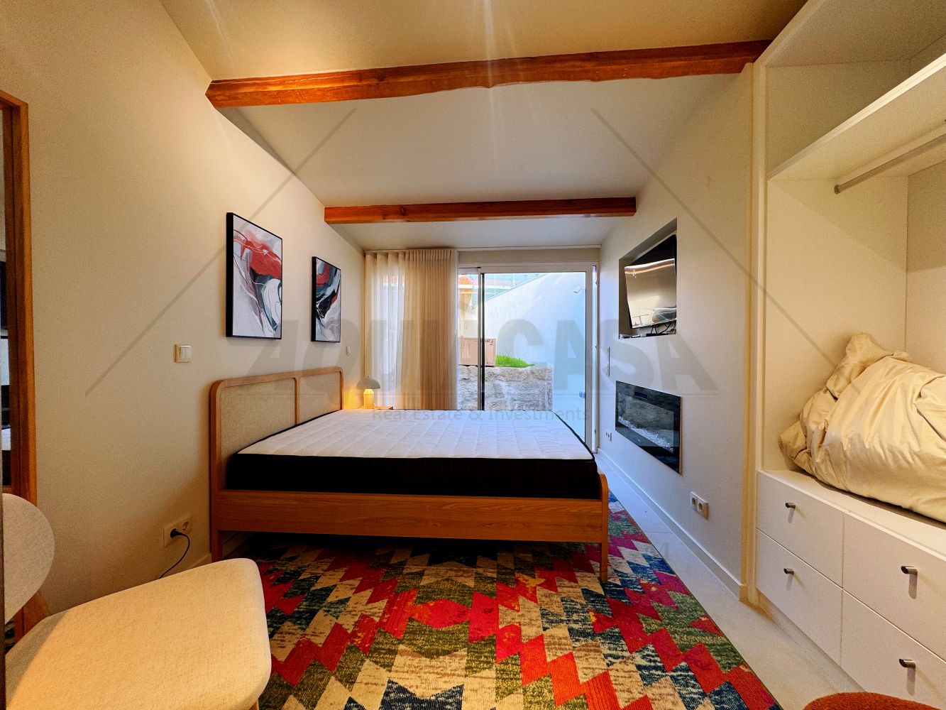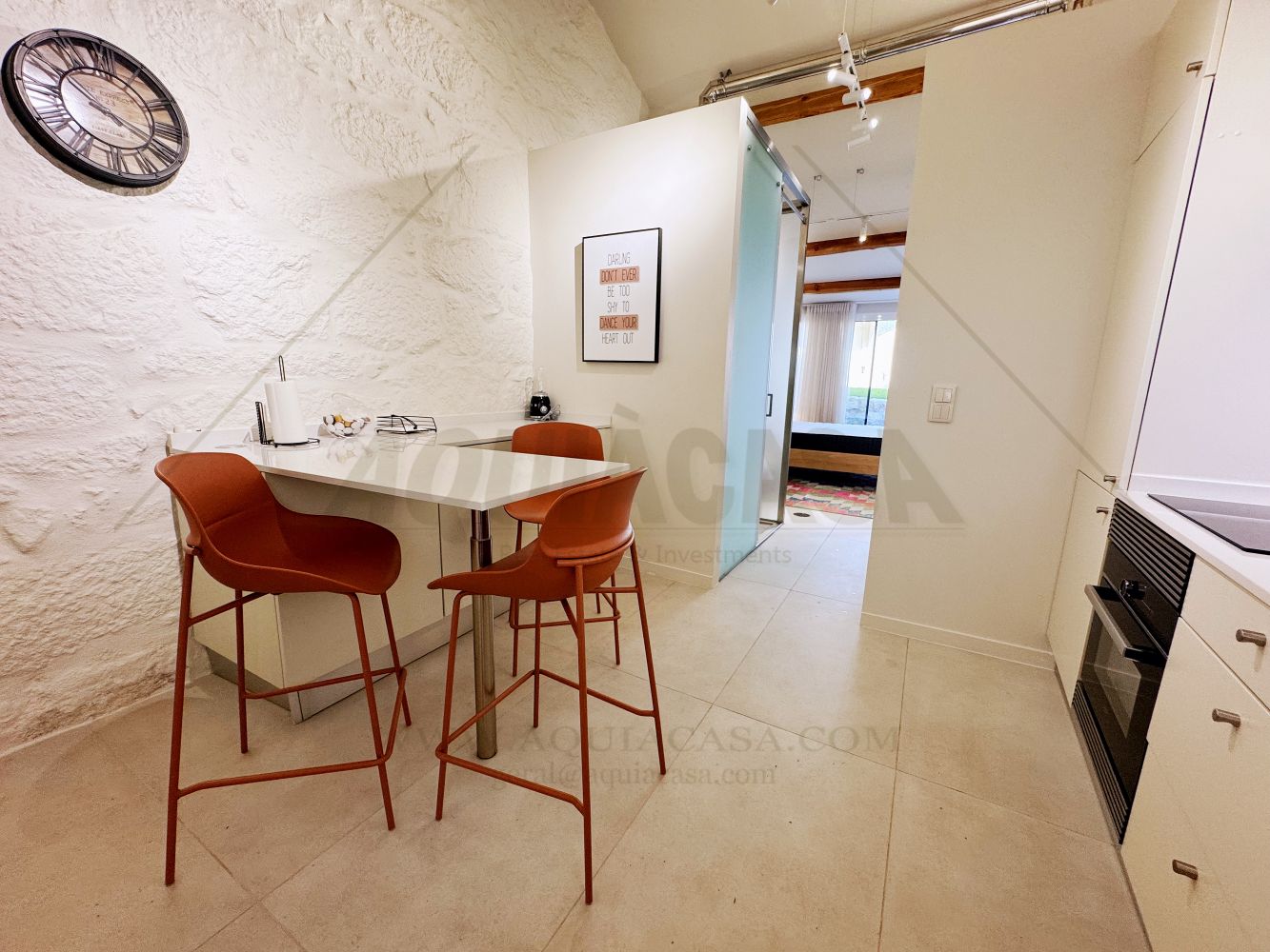 O interior inclui 1 quarto acolhedor, 1 cozinha totalmente equipada e 1 casa de banho, sendo ideal para residência própria, casais, estadias de férias ou investimento para arrendamento.
